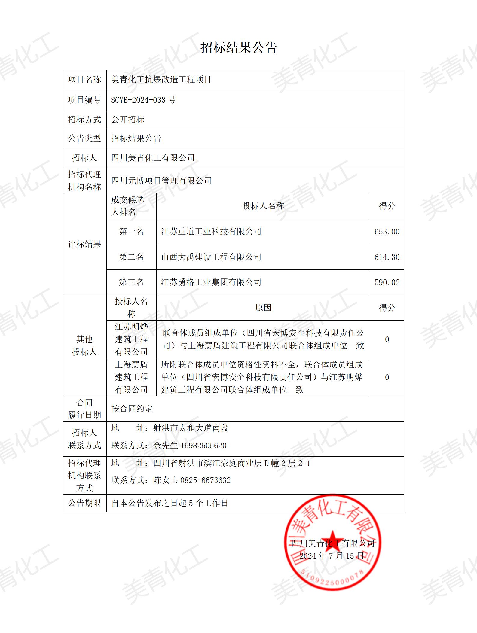 招標(biāo)結(jié)果公告